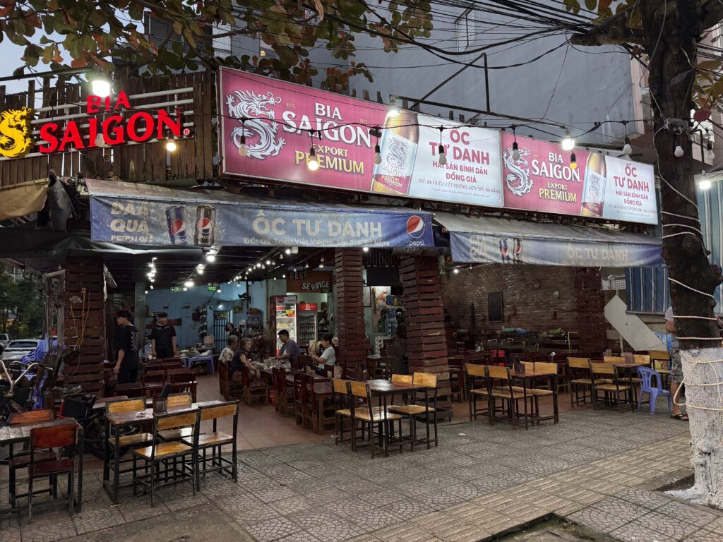 ダナンの最後の晩餐になります。行ったのはオックトゥーザンという貝屋さんです。