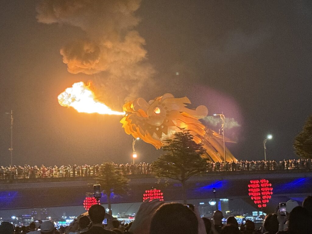 食後はドラゴン橋のショーをみました
