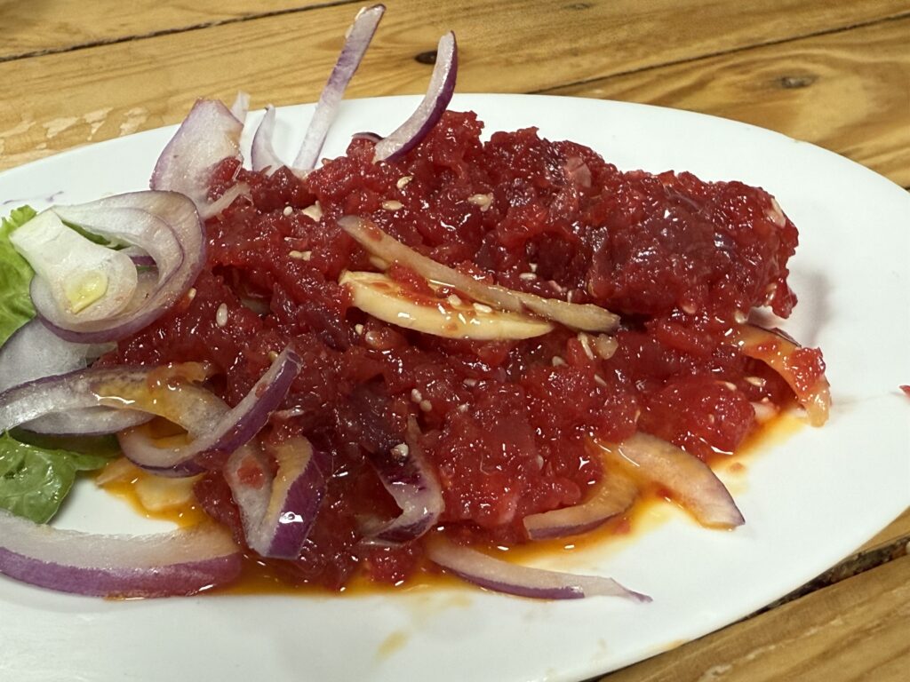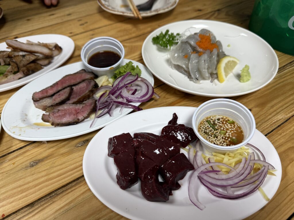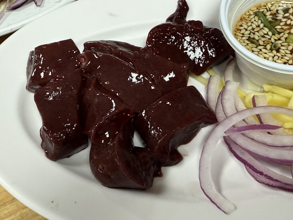 2日目の夜ご飯はご要望におこたえして、プラカノンの生レバー屋です。