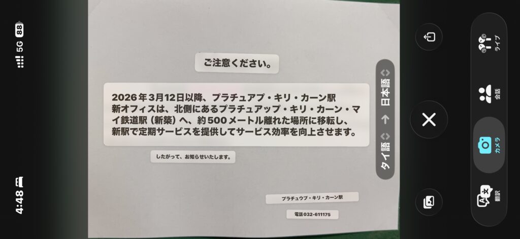 5時間半の乗車でクルンテープアピワット駅に到着しました。