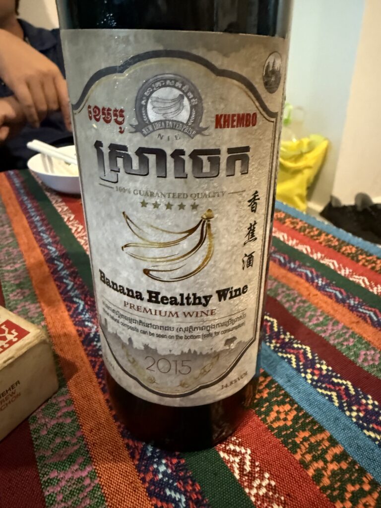 Mさんお持たせのカンボジアのバナナワイン。予想以上においしくいただいた