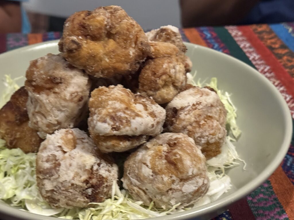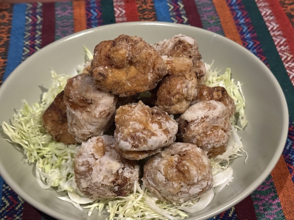 定番のから揚げを新年から作りました。色白のものは2度揚げ前にさらに片栗粉攻撃をしたため