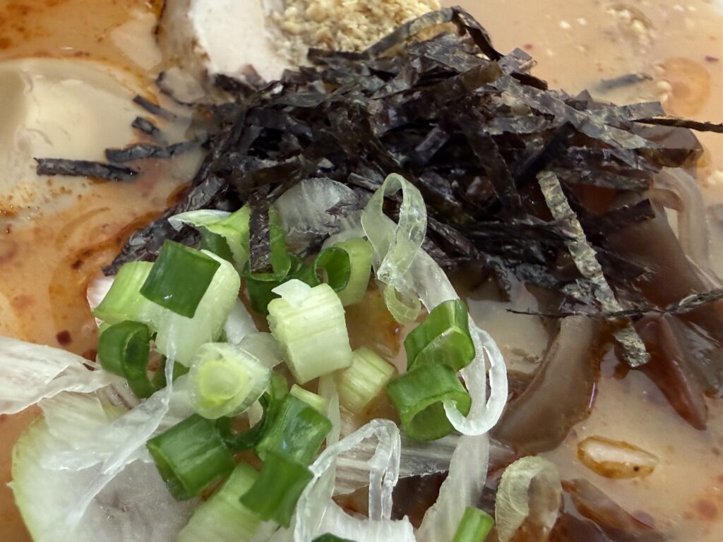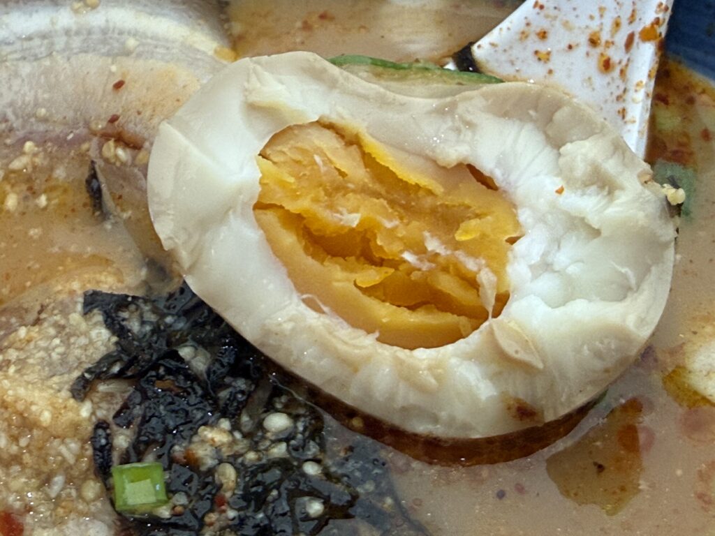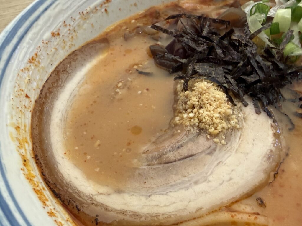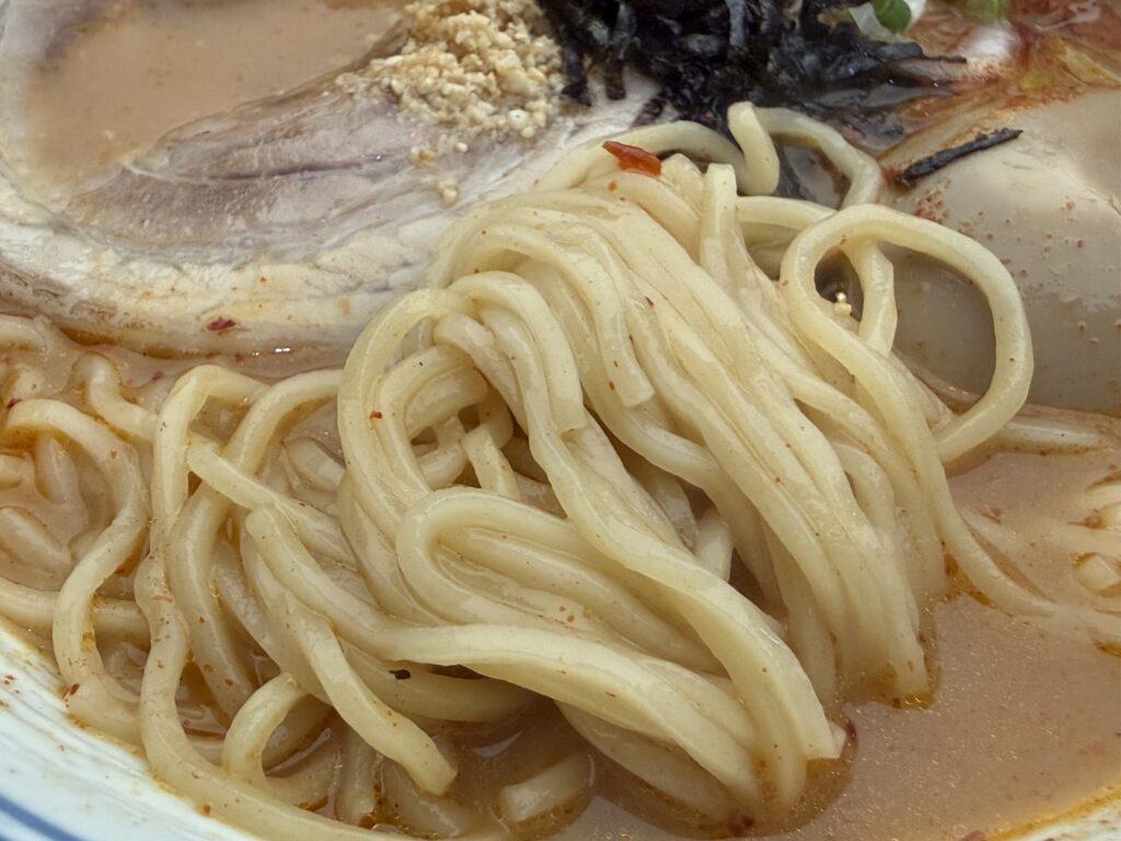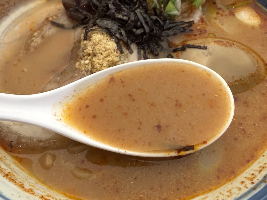 オレンジ色のスープ。ピリッと辛いラーメンです