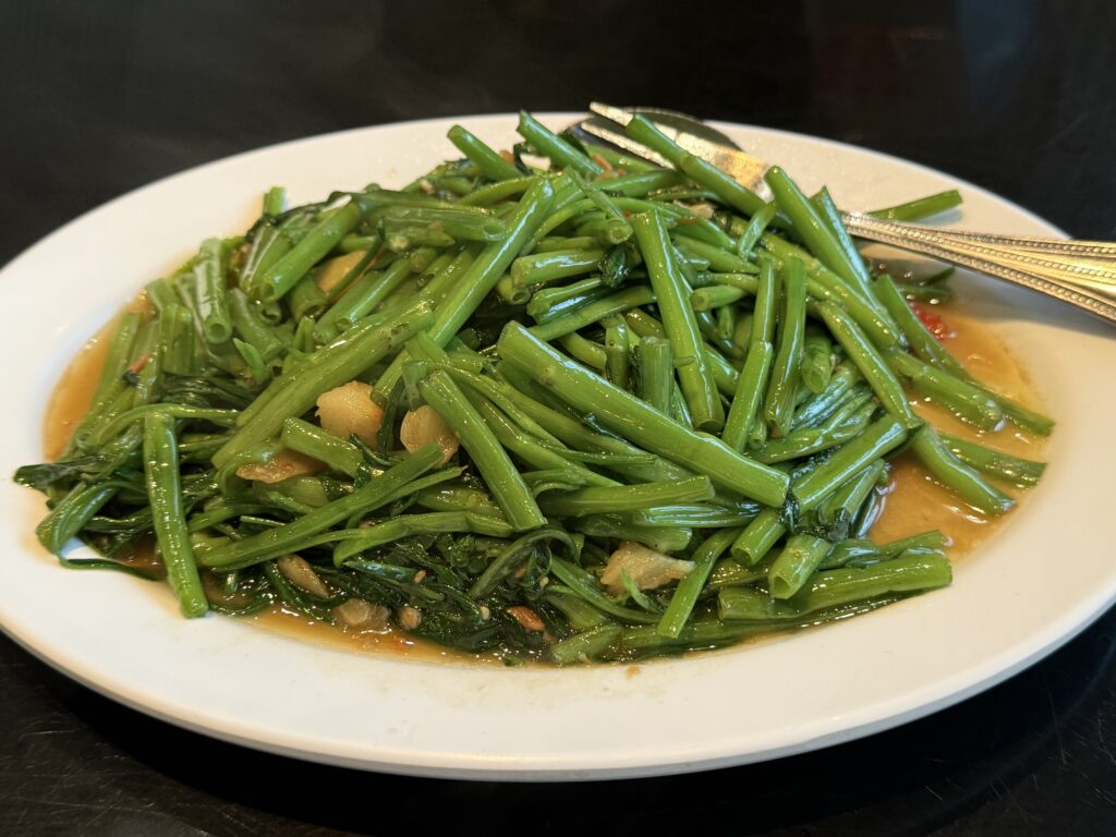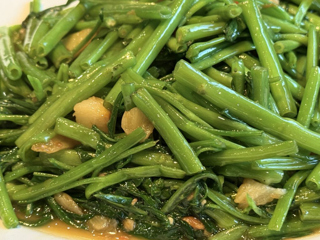 空芯菜炒め、にんにく多め、唐辛子少なめ