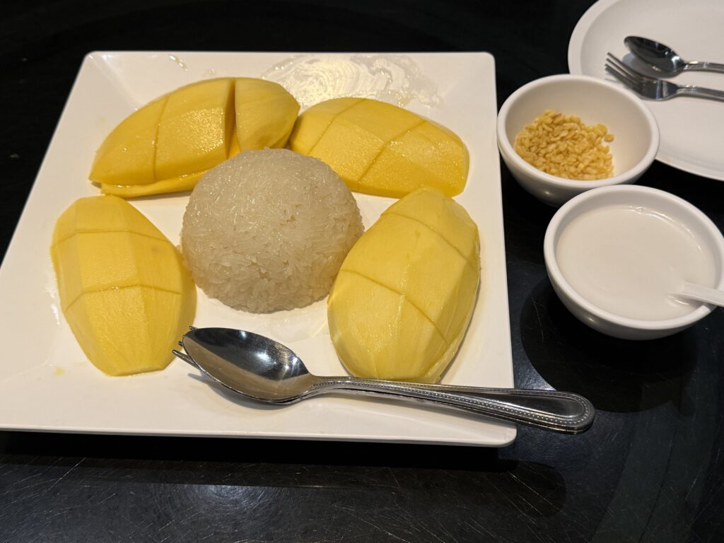 タイらしいデザートということで、カオニャオマムワンを発注