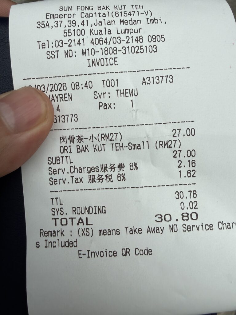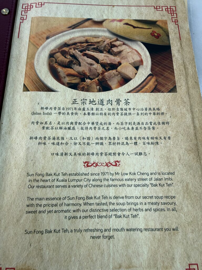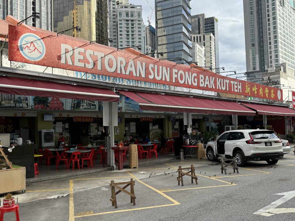 KLは1泊、食べられるご飯は限られます。2日目の朝昼兼用のブランチは肉骨茶(バクテー)を食べに行きました。