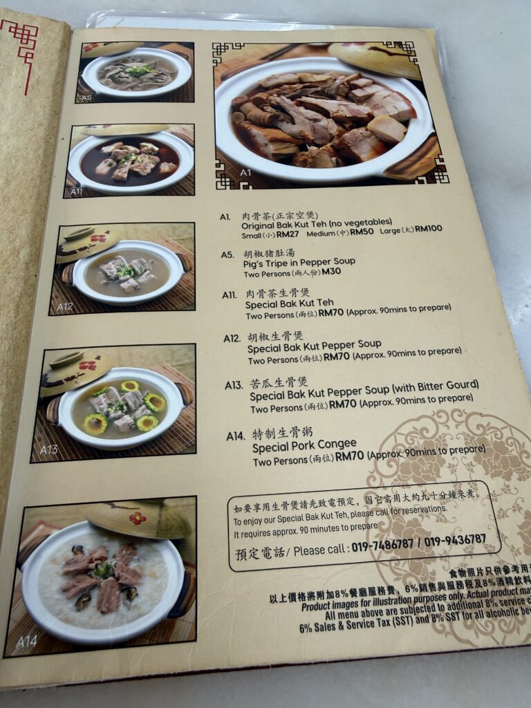 肉骨茶メニュー