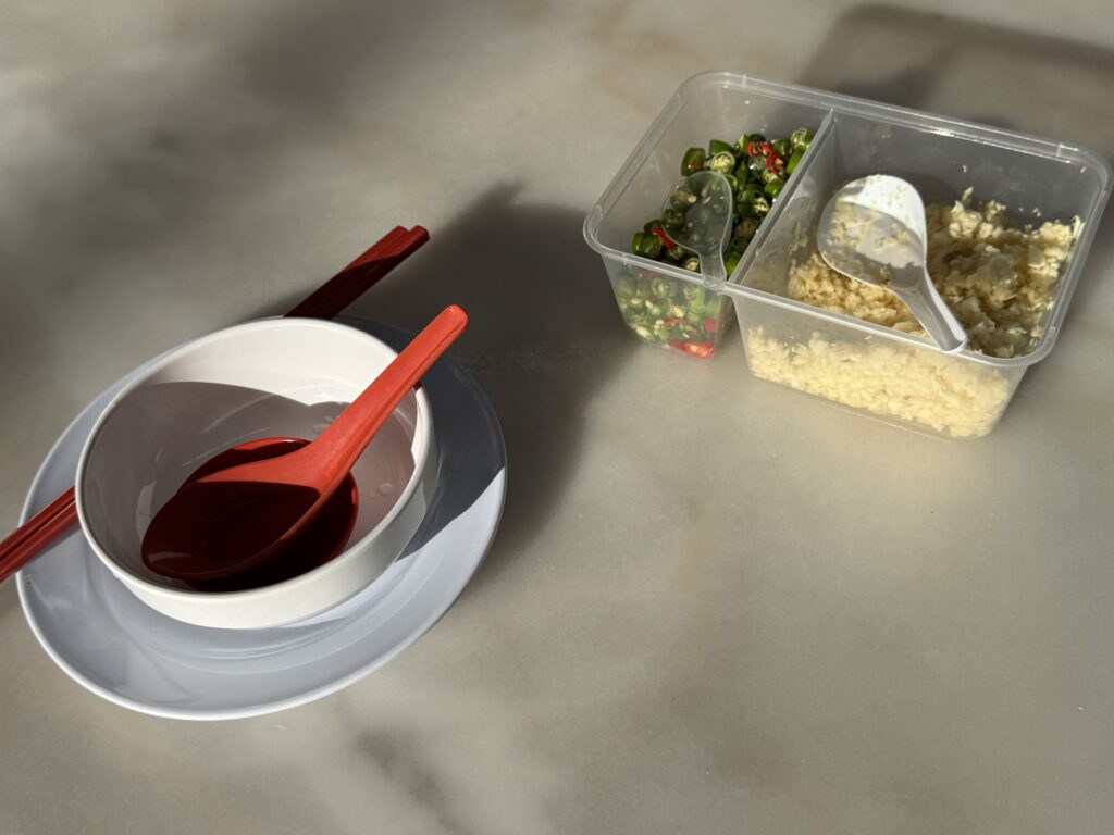 注文したらお皿と薬味が運ばれました
