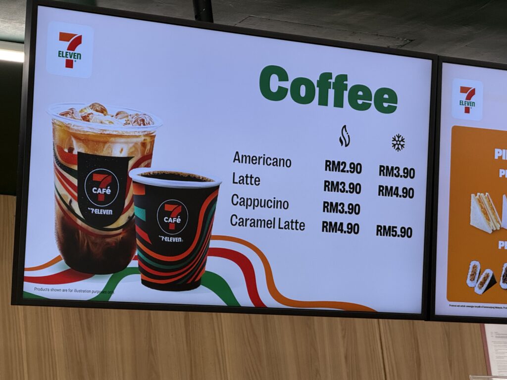 セブンイレブンのコーヒー 2.9リンギット