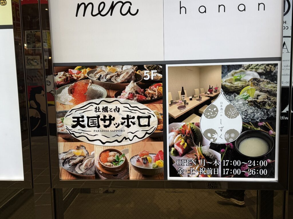 場所は牡蠣と肉 天国札幌というビルの中のお店です