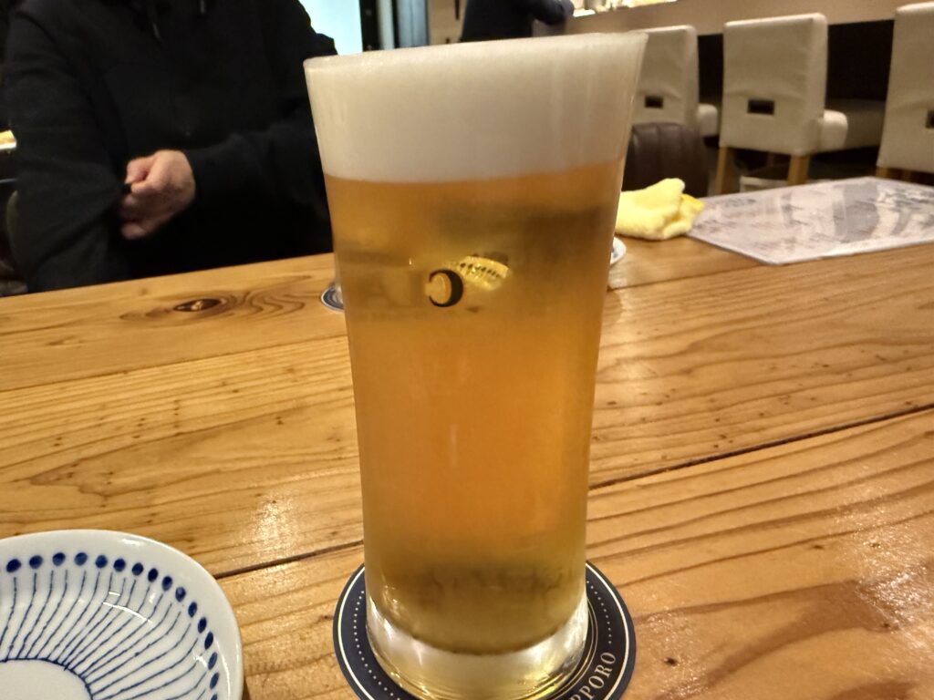 サッポロクラシック生で乾杯。久しぶりの味