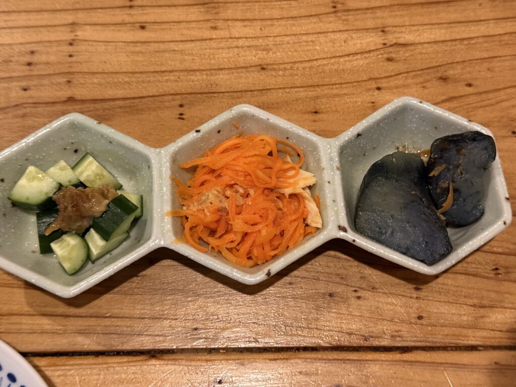 前菜三種盛り きゅうり、にんじんしりしり、茄子