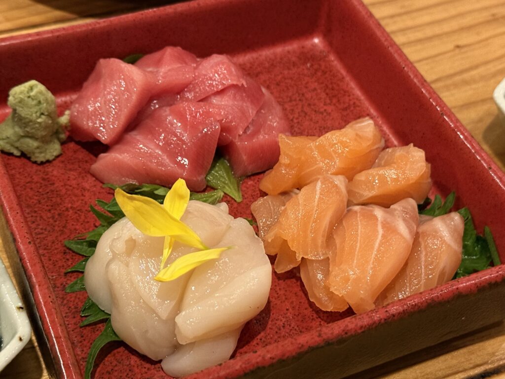 お刺身三点盛り 本鮪、サーモン、ホタテ