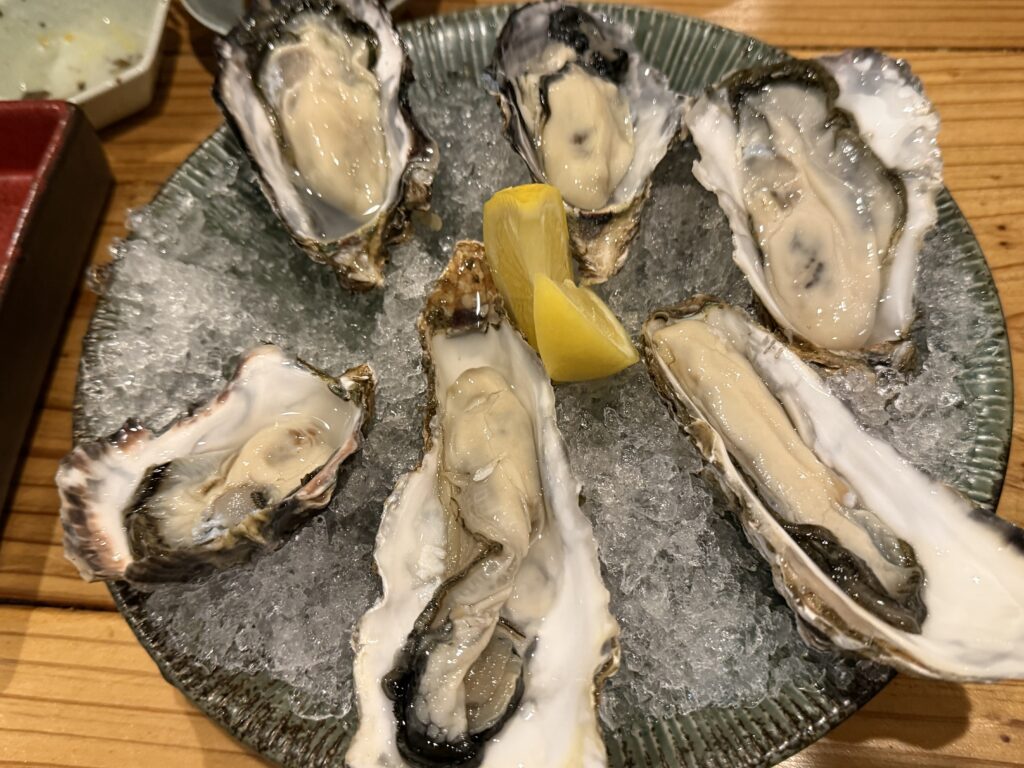 活牡蠣2種食べ比べ 仙鳳趾と鳥羽の桃こまち 手前が仙鳳趾で奥が桃こまちだけど、桃こまちの方がおいしいとは!
