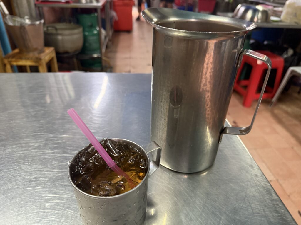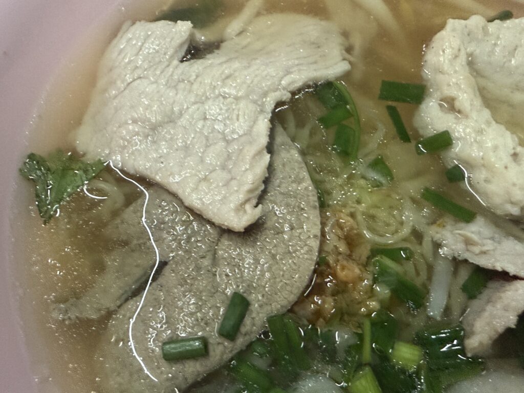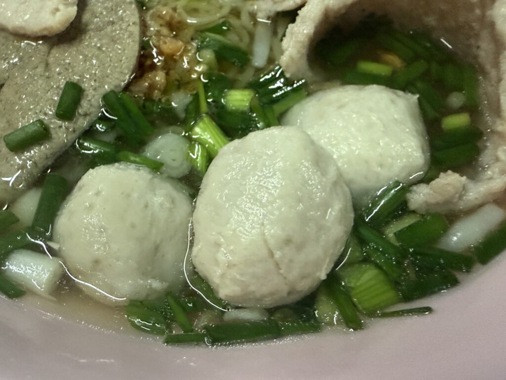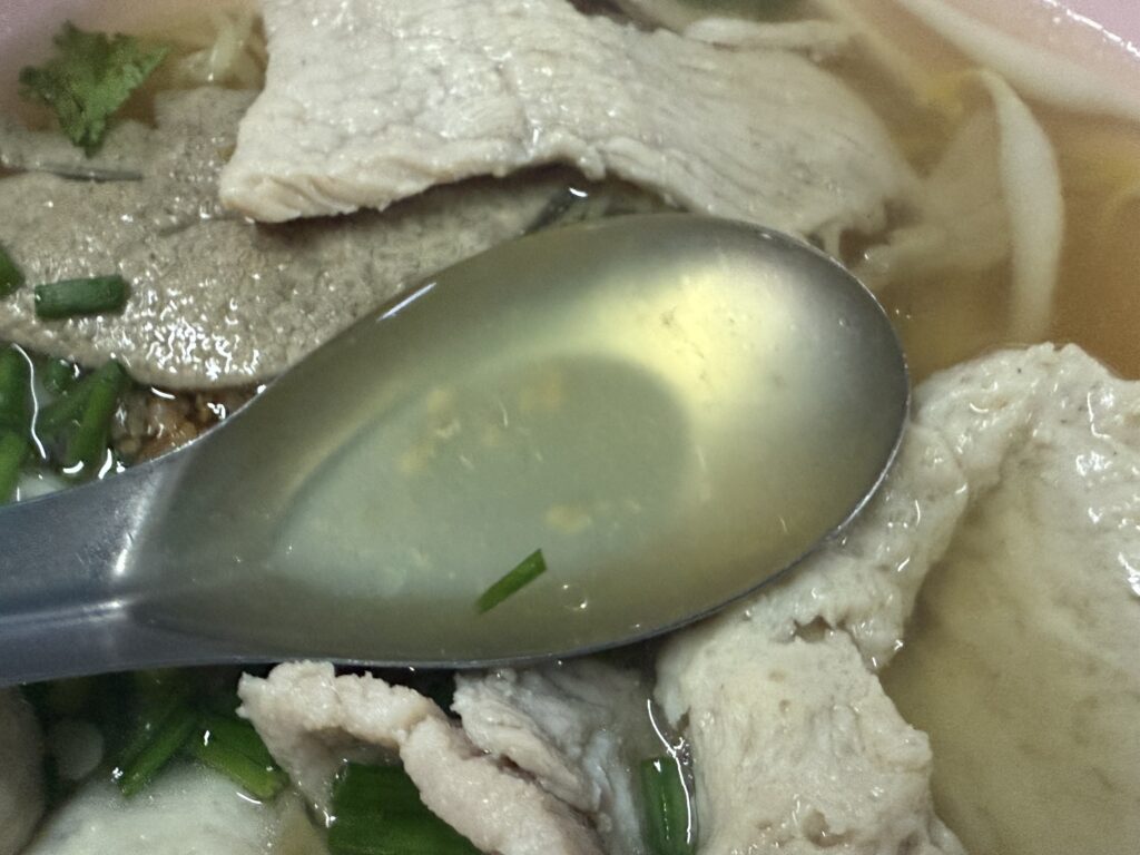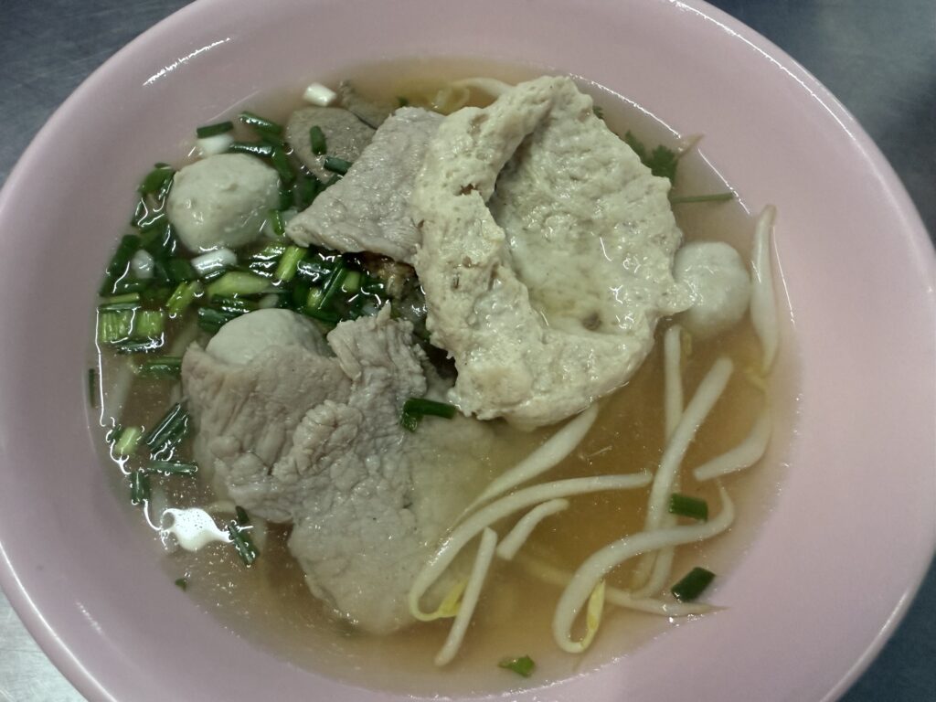 今回はあっさりとバミー(小麦麺)のナームサイ(澄ましスープ)を発注します。位置的には、トップメニューのタマダー(並盛)ってところですね。50バーツ