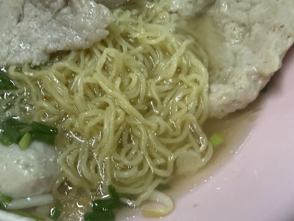 小麦麺。香港のようなゴム麺ではなくて、スープとともにラーメンを引き立てます