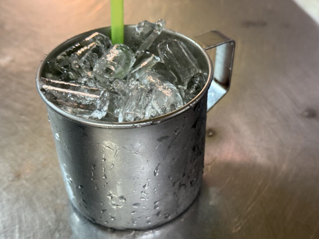 氷をもらって卓上の水をいただく