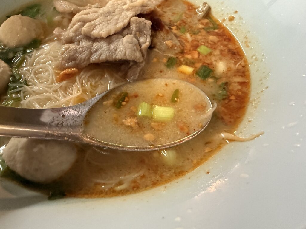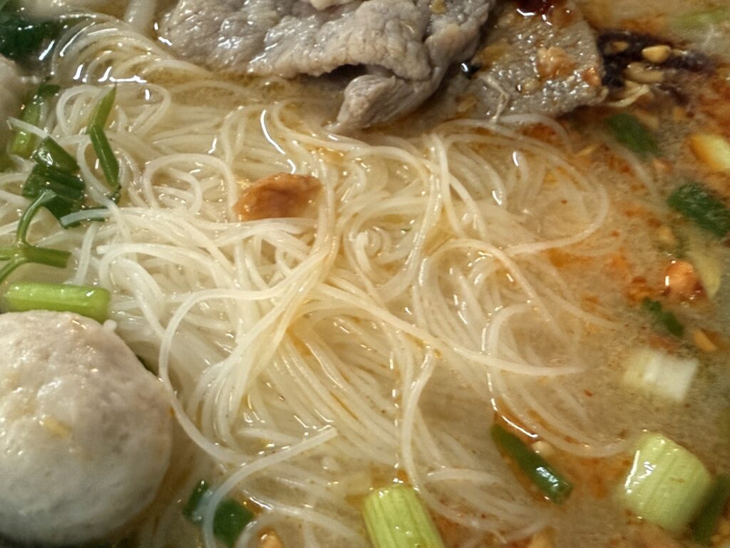 今回はセンミー・トムヤムを注文します。センミーとは、細い米麺です。
