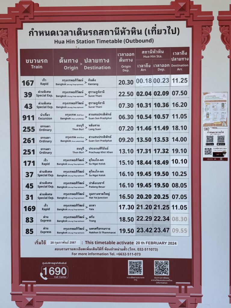 ホアヒン駅に8分ほど遅れての到着