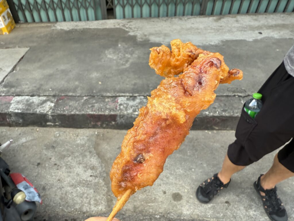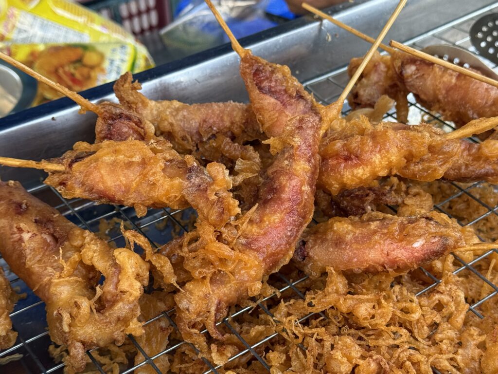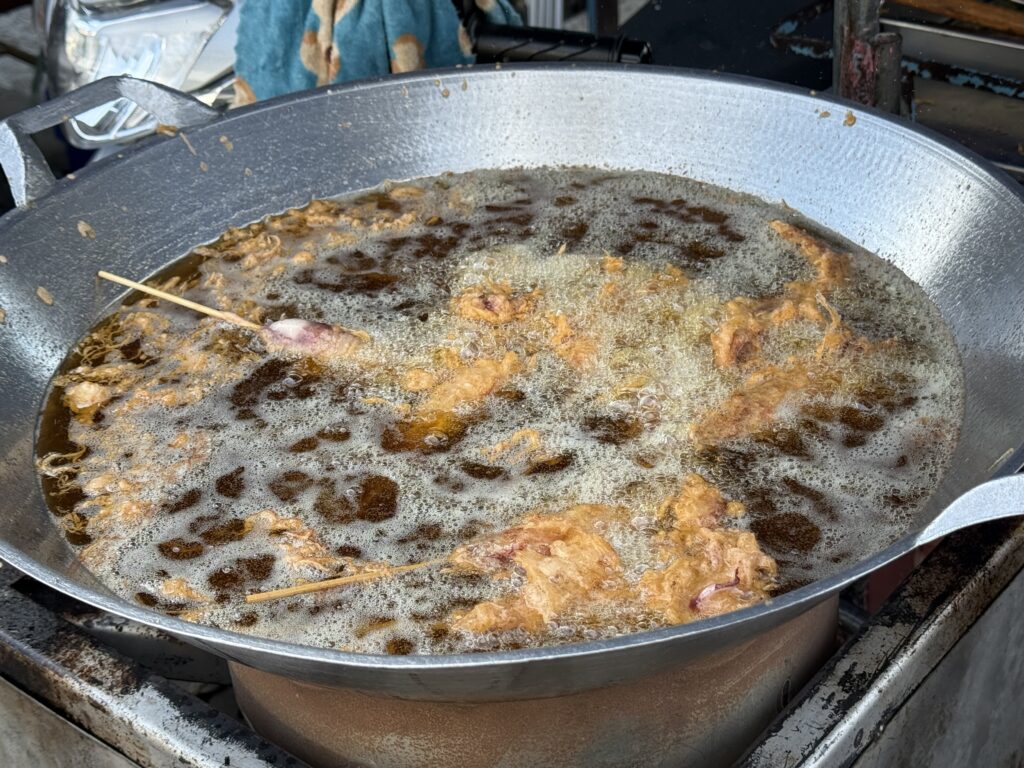 ホテル周辺を散策しましょう。ほどなく揚げ物屋台を発見