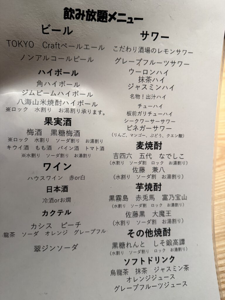 飲み放題メニュー