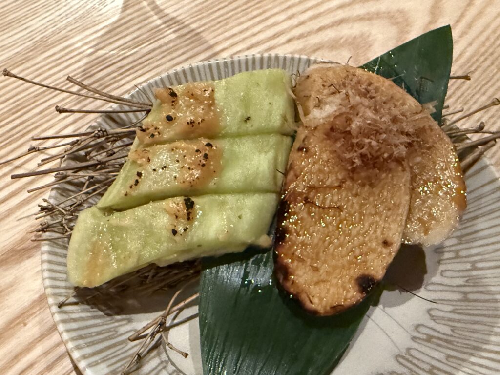 佐土原茄子の炭火焼と長芋雲丹醤油焼き