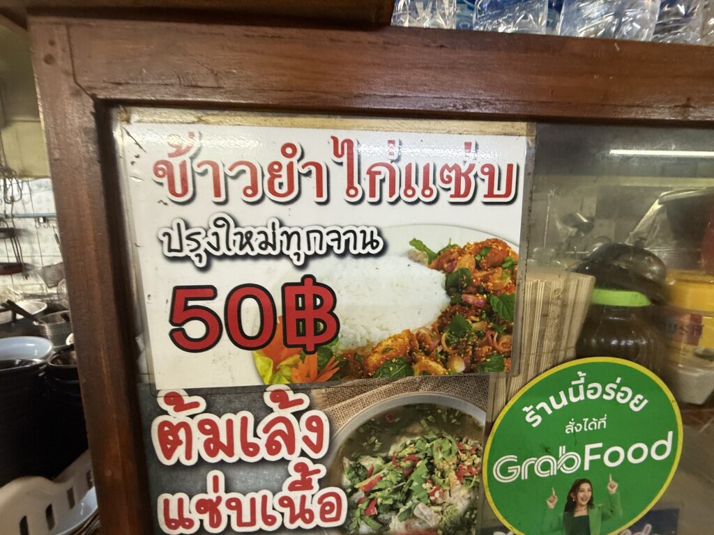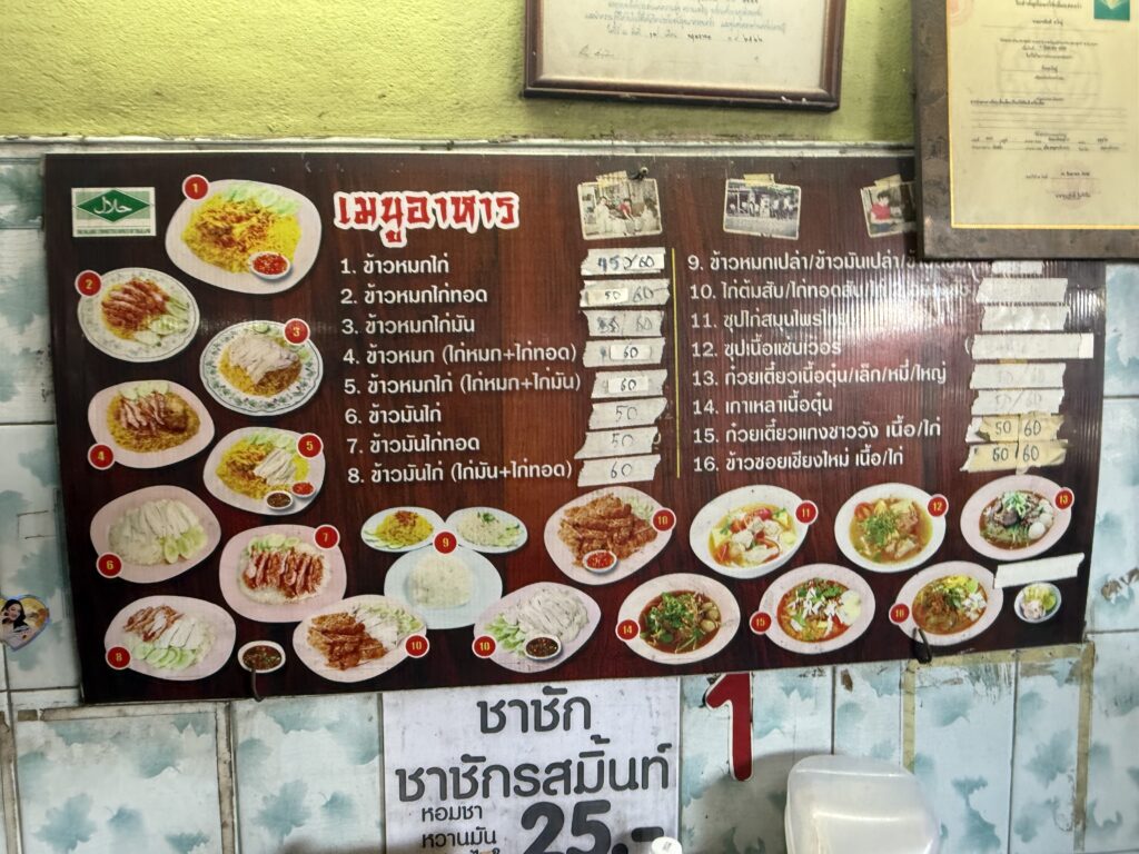 ここはカオモックガイ、昨晩ラウンジで食べたビリヤニみたいなタイ料理がトップメニューです。あとカオマンガイやカオソーイなどがありますが、イスラムのお店なので豚肉料理は一切ありません。