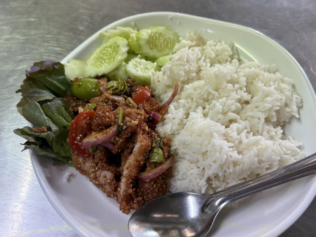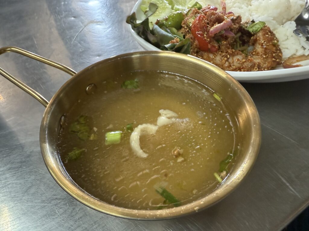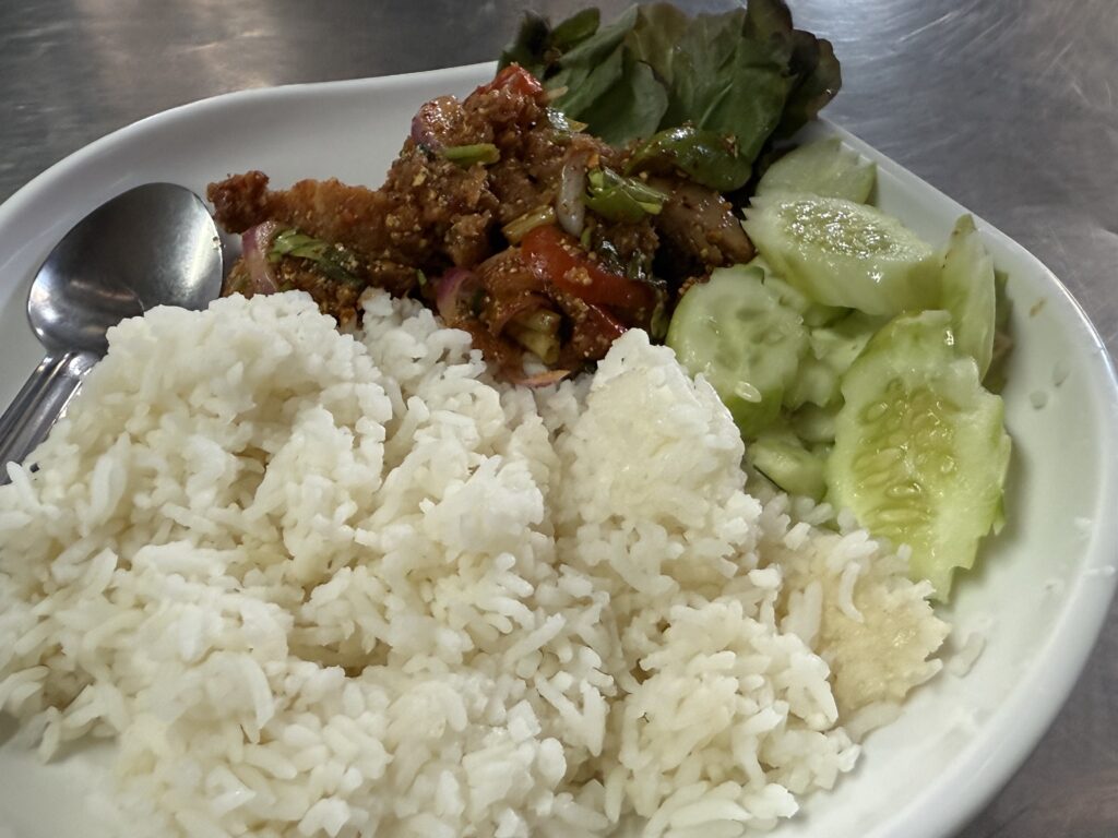 辛い鶏肉とご飯、そしてスープでランチを楽しみました。チャーン島ではたいして美味しいものが食べられなかったので、やはりバンコクの美味しさを再認識しました。