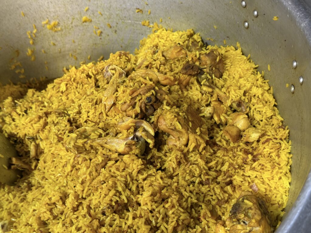 店頭で炊かれたカオ・モックガイ。ビリヤニのような炊き込みご飯ですが、実にうまそう