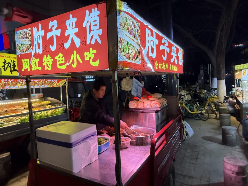 もう少しいただきましょう。西安名物、肉夹馍(ロウジャアモウ)の屋台へ