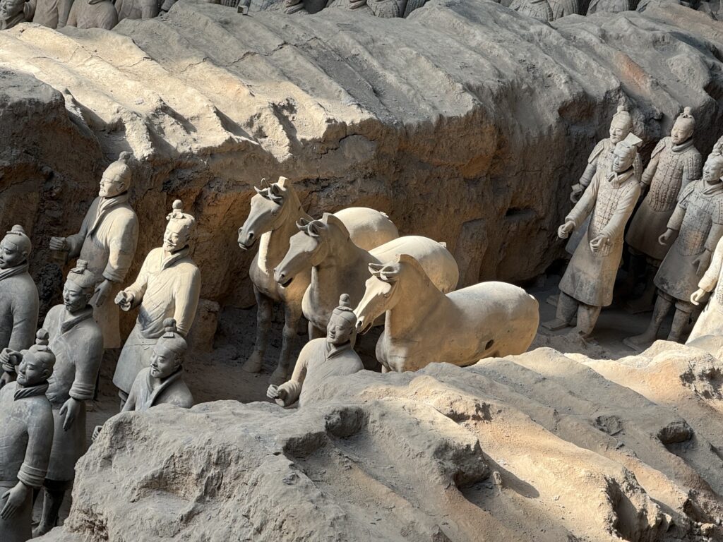 兵馬俑は、1974年に井戸を掘っていた農民によって偶然発見されました。これらは始皇帝を死後の世界で守るために作られた粘土製の兵士・馬の像で、その数は8000体を超えるとされています。
