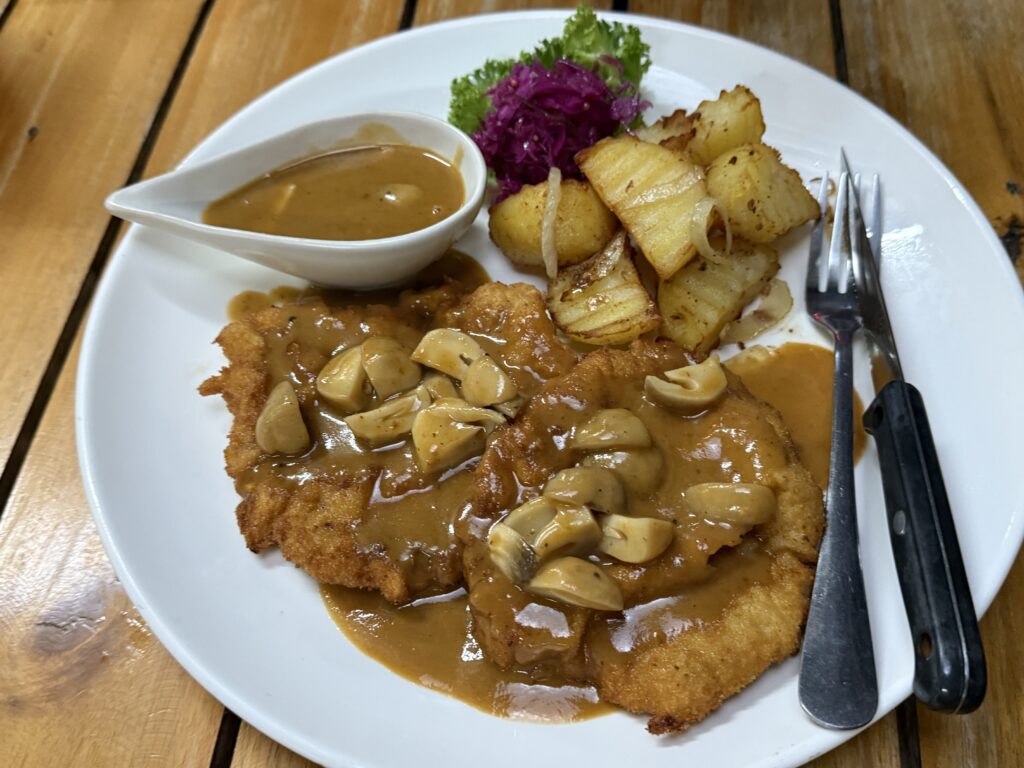 シュニッツェル屋さんだもん。たのまなきゃね。Jager Schnitzel